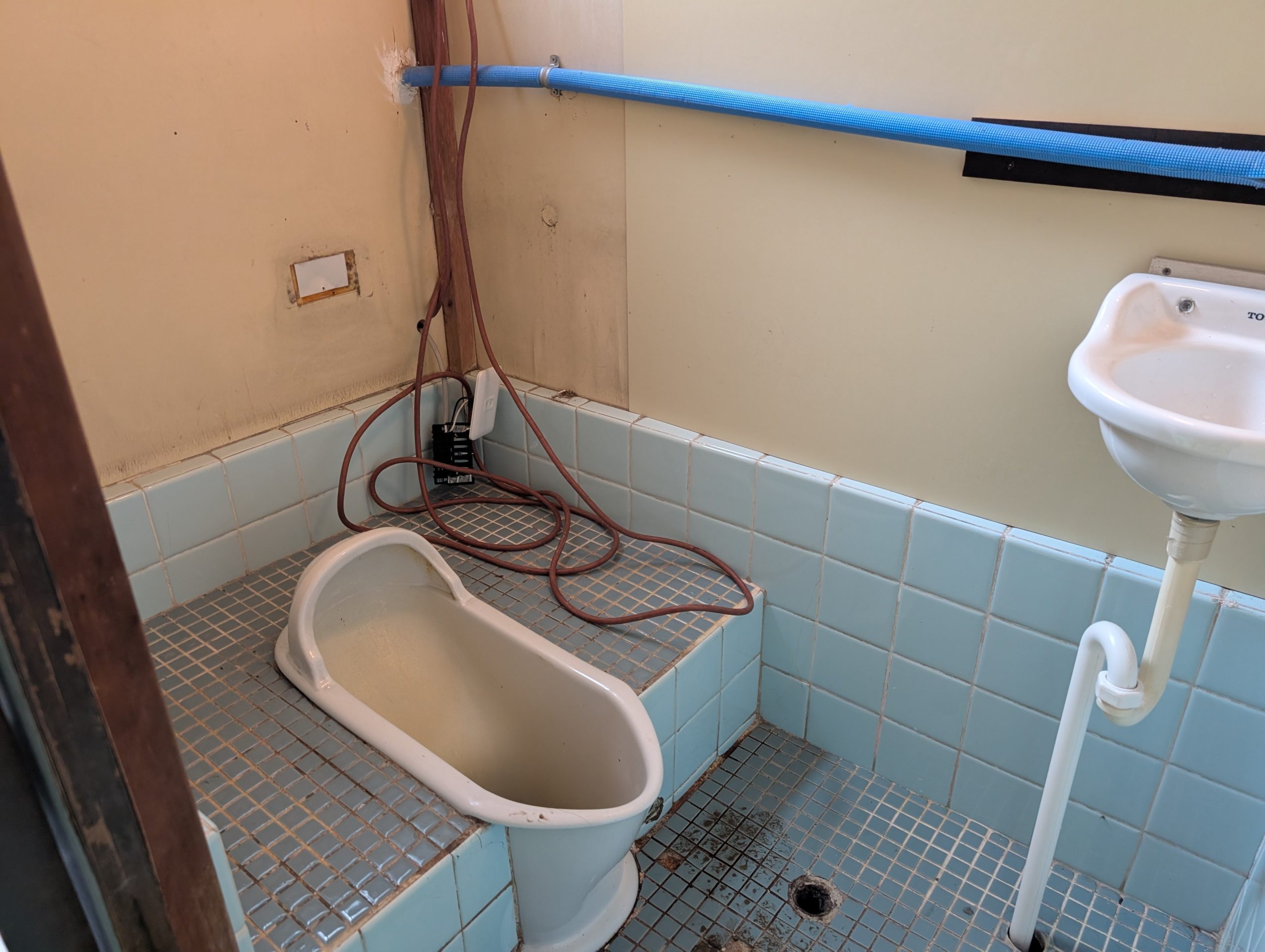 既存の汲み取り式トイレはキレイに掃除し山砂を入れました。