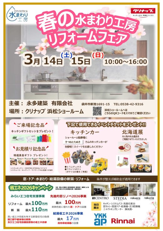 リフォームフェア クリナップ 浜松ショールーム 春の暖かい陽気を感じるこの頃ですが、皆様 […]